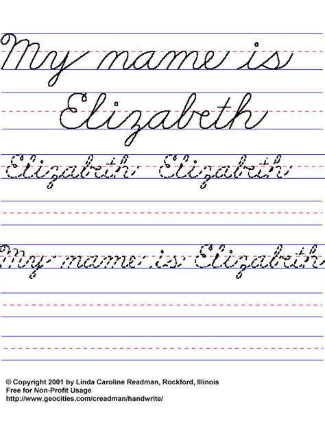 how to write the name elizabeth in cursive