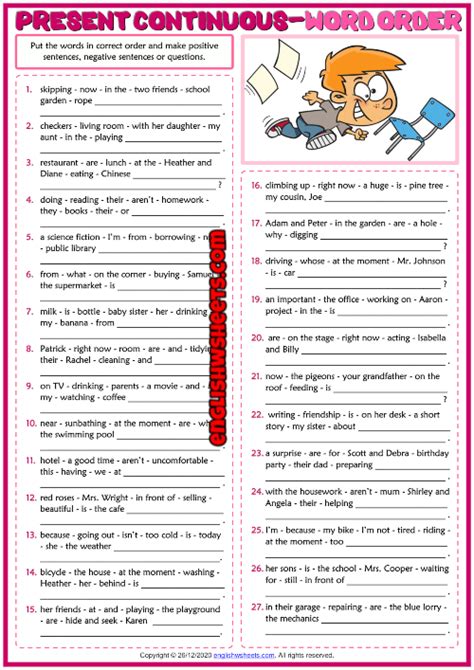 present continuous word order exercises pdf